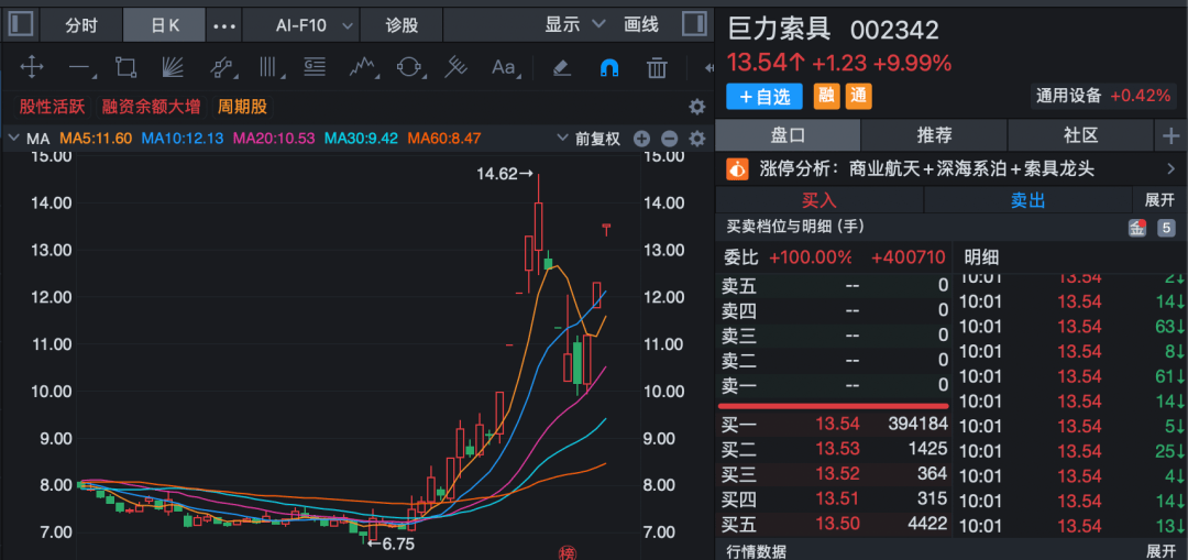 巨力索具3连板,中超控股2连板,德恩精工、睿创微纳涨幅居前,飞沃科技、信科移动、金风科技、烽火通信冲高。