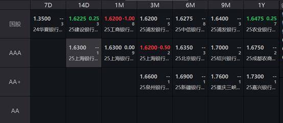 一级存单方面,今日3M国股在1.57%-1.63%位置需求较好,1Y期国股报在1.63%-1.66%的位置。二级存单方面,6M国股成交在1.6275%附近(较前一日变化不大),1Y国股成交在1.6475%的位置(较前一日上行0.25BP)。