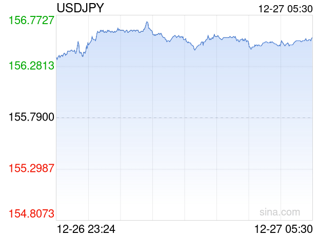 新浪外汇消息2025年12月27日,截至05时30分,外汇市场上美元兑日元汇率突破1美元兑换156.5700日元。涨幅为0.5007%