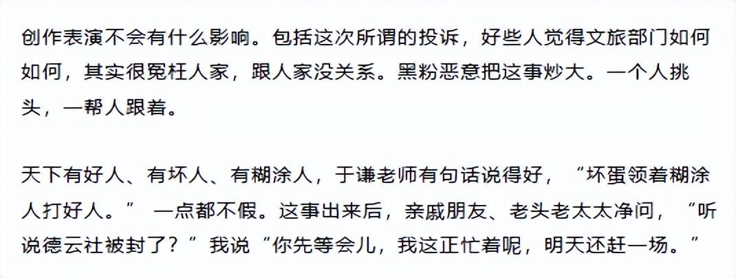 但对于外界这样的指责,郭德纲等人并未立刻进行激烈反驳。