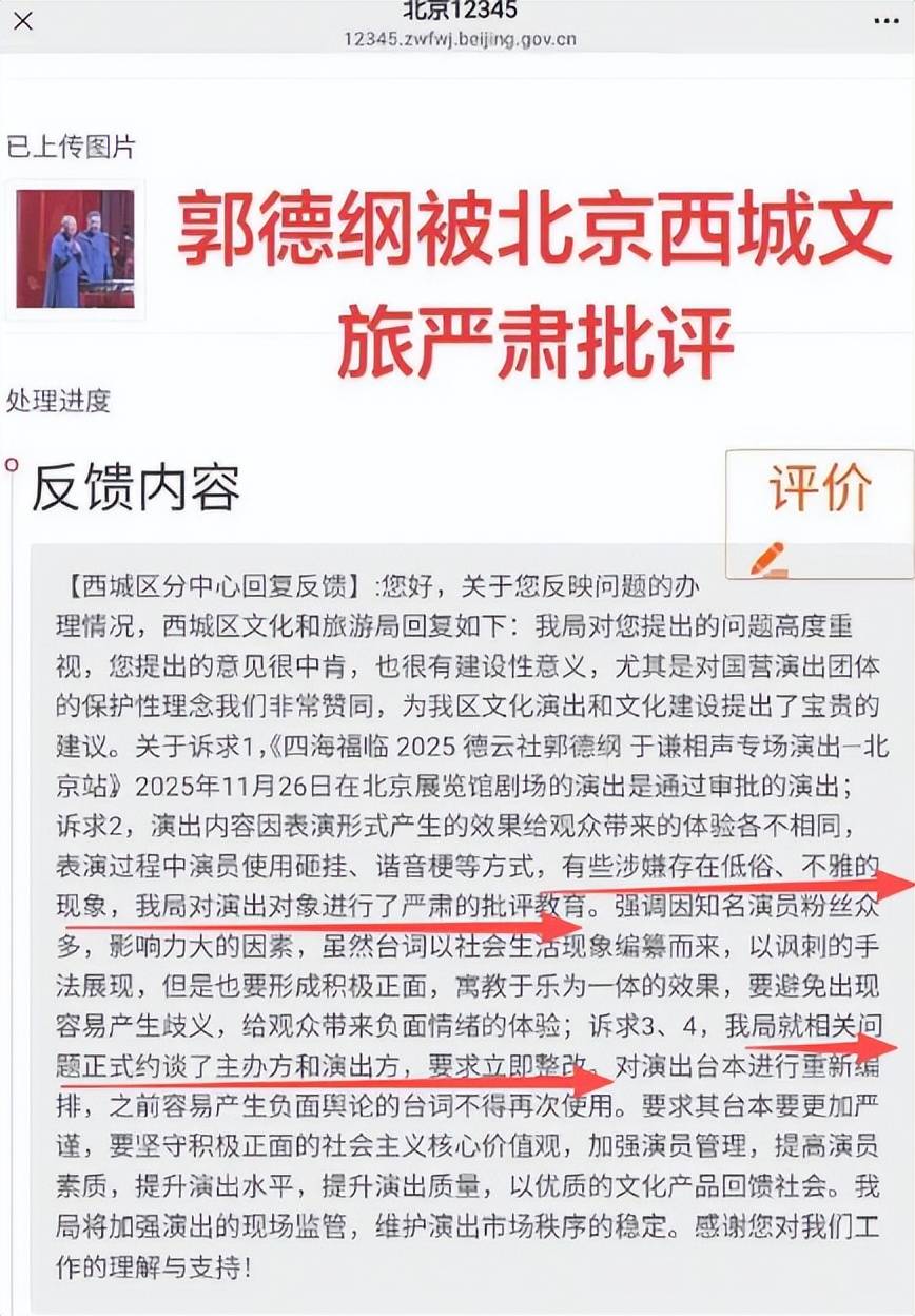面对这一问题,郭德纲表示这次被投诉,其实和相关文旅部门没有多大关系。