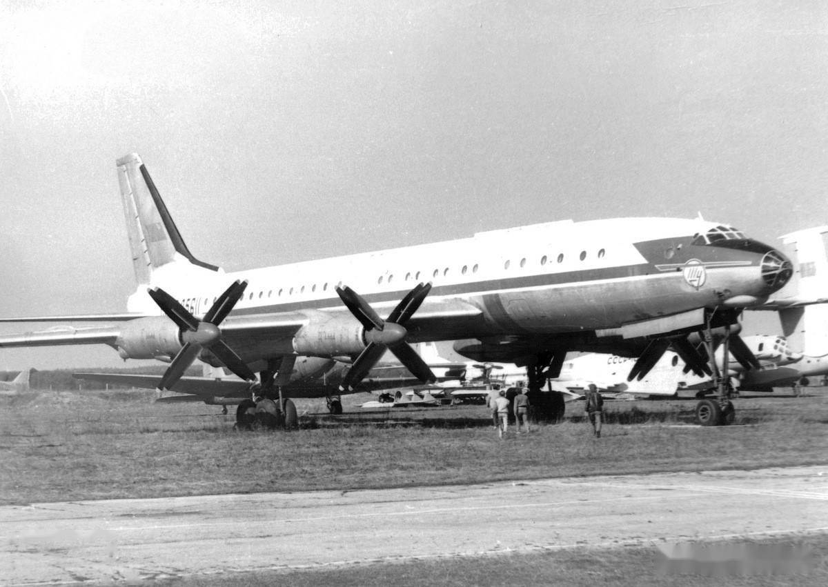 第二架不难猜出——是 图-114(Tu-114)。在它旁边,可以看到一群参观者正朝着 VVA-14飞机走去。