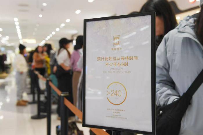 消费者在排队区等待,当日上午10点,全部进店号牌发放完毕。
