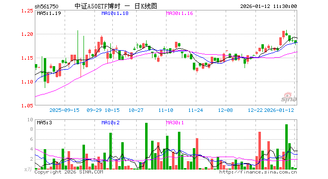 1月12日,截止午间收盘,中证A50ETF博时(561750)跌0.42%,报1.181元,成交额23.28万元。中证A50ETF博时(561750)重仓股方面,宁德时代截止午盘跌2.07%,贵州茅台涨0.42%,中国平安跌1.52%,招商银行跌0.02%,紫金矿业涨0.32%,美的集团跌2.14%,长江电力涨0.18%,立讯精密跌1.29%,恒瑞医药涨0.00%,比亚迪涨0.42%。