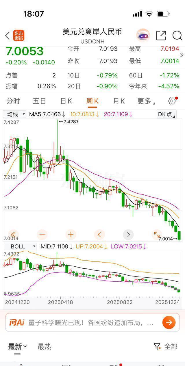 12月24日下午,手机银行界面在光线下闪着冷白的光,离岸人民币一度触及7.0014这个数字,屏幕上那几位数像是现场传来的警报