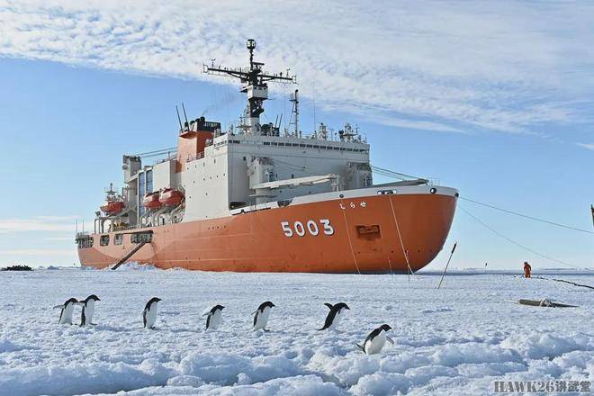 转到日本海上自卫队的白濑号破冰船,这艘船正在南极进行科考作业。船只穿行于浮冰区,艏部的舷梯缓缓放下,科考队员们一一登上冰面,开始勘探。船体下部有一排特殊的圆孔,这并非装饰,而是破冰时用来向冰面喷洒热水的装置,目的是减少破冰时的难度,彰显出科技与人力的结合。