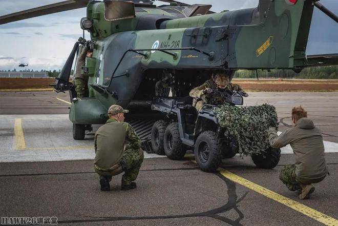 在芬兰与德国联合举行的南格里芬(Southern Griffin)演习中,德国特种部队士兵驾驶6×6全地形车,从NH90直升机的机舱中走出。由于这种高差的特殊要求,车体设计必须考虑到如何保障顺利通过直升机舱门,但又不影响飞行器的起降效率。