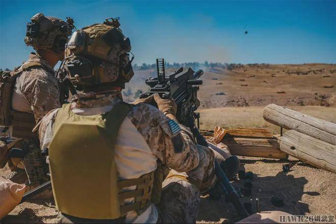 美国海军陆战队特种作战司令部(MARSOC)下属的海军陆战队特种突袭团正在进行实弹射击训练。一名海军陆战队员正在操作Mk19型40mm自动榴弹发射器进行射击。该武器可通过更换不同弹种,打击多种目标,具有极高的灵活性和精确度,展示了现代军事技术的强大实力。