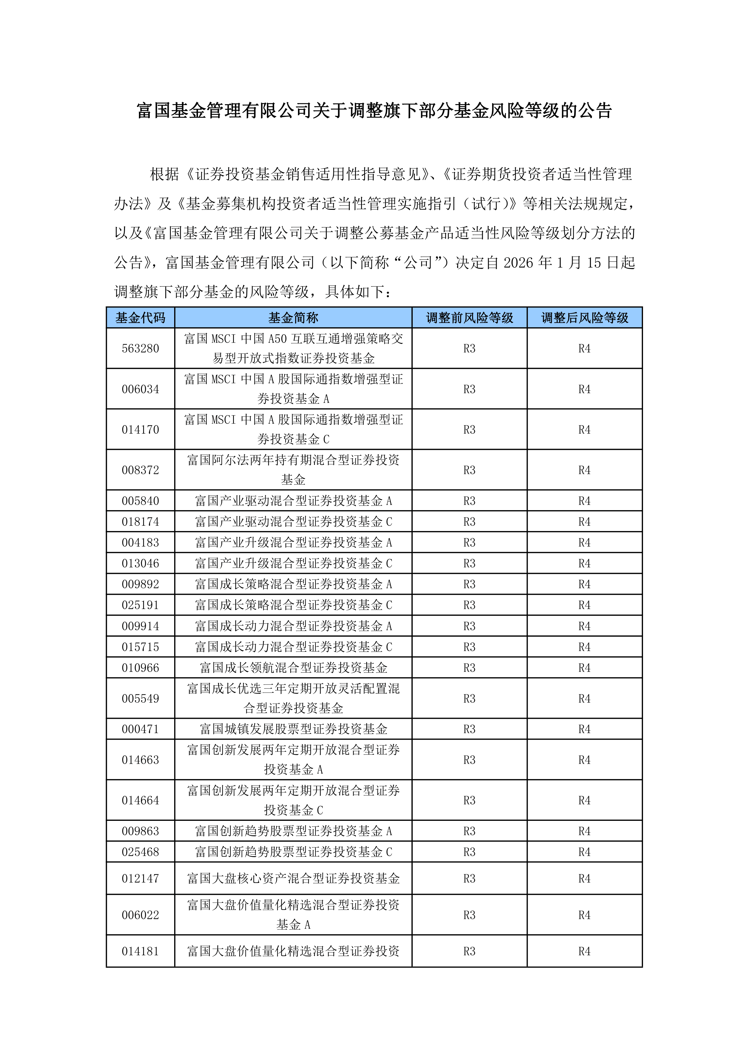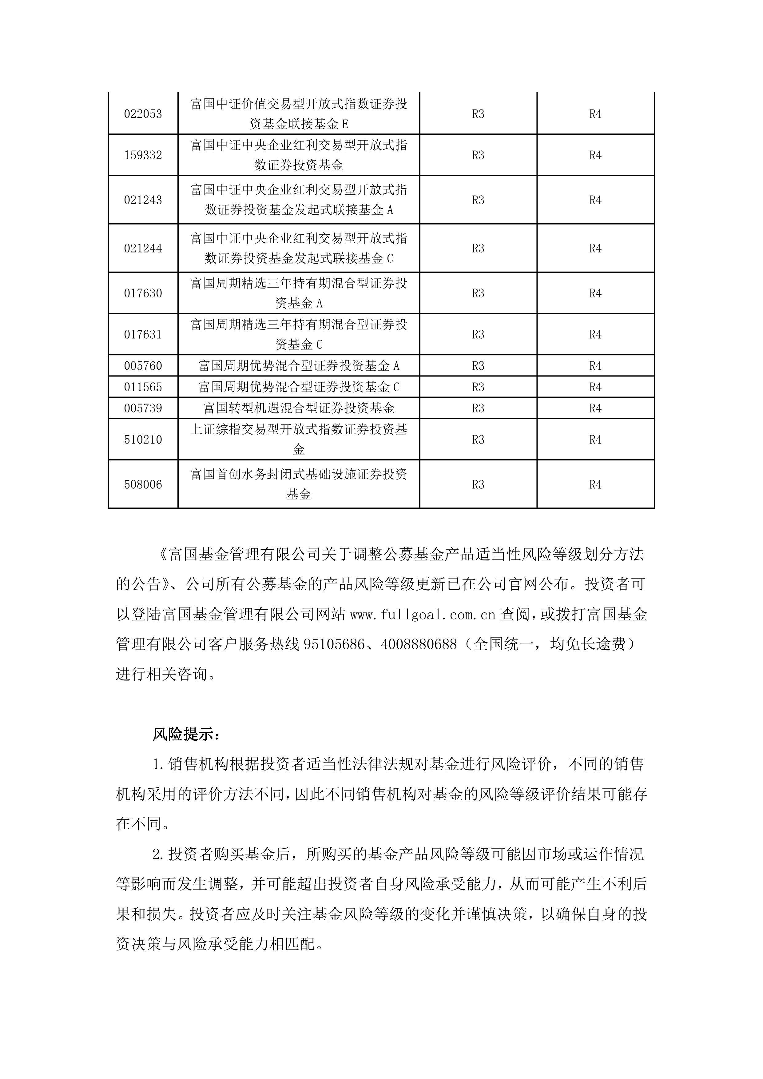 基金-港股通红利ETF富国-富国基金管理有限公司关于调整旗下部分基金风险等级的公告