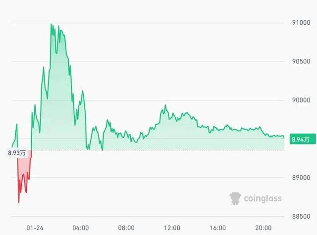 近日比特币波动加大。1月23日深夜拉升,比特币在站上90000美元后,又于1月24日凌晨跳水再度跌破90000美元。