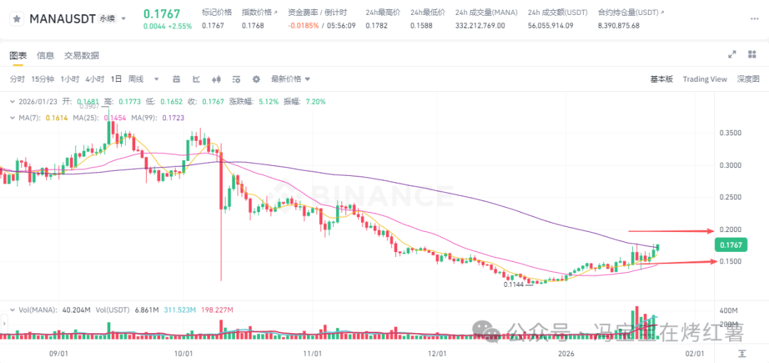 GameFi板块强势爆发,AXS、SAND已站稳日线MA120及以上,MANA暂未触及。从日线看两连阳+MACD零轴上扬,逐渐走出底部区间,后续还有上涨空间,将冲击0.2压力位!