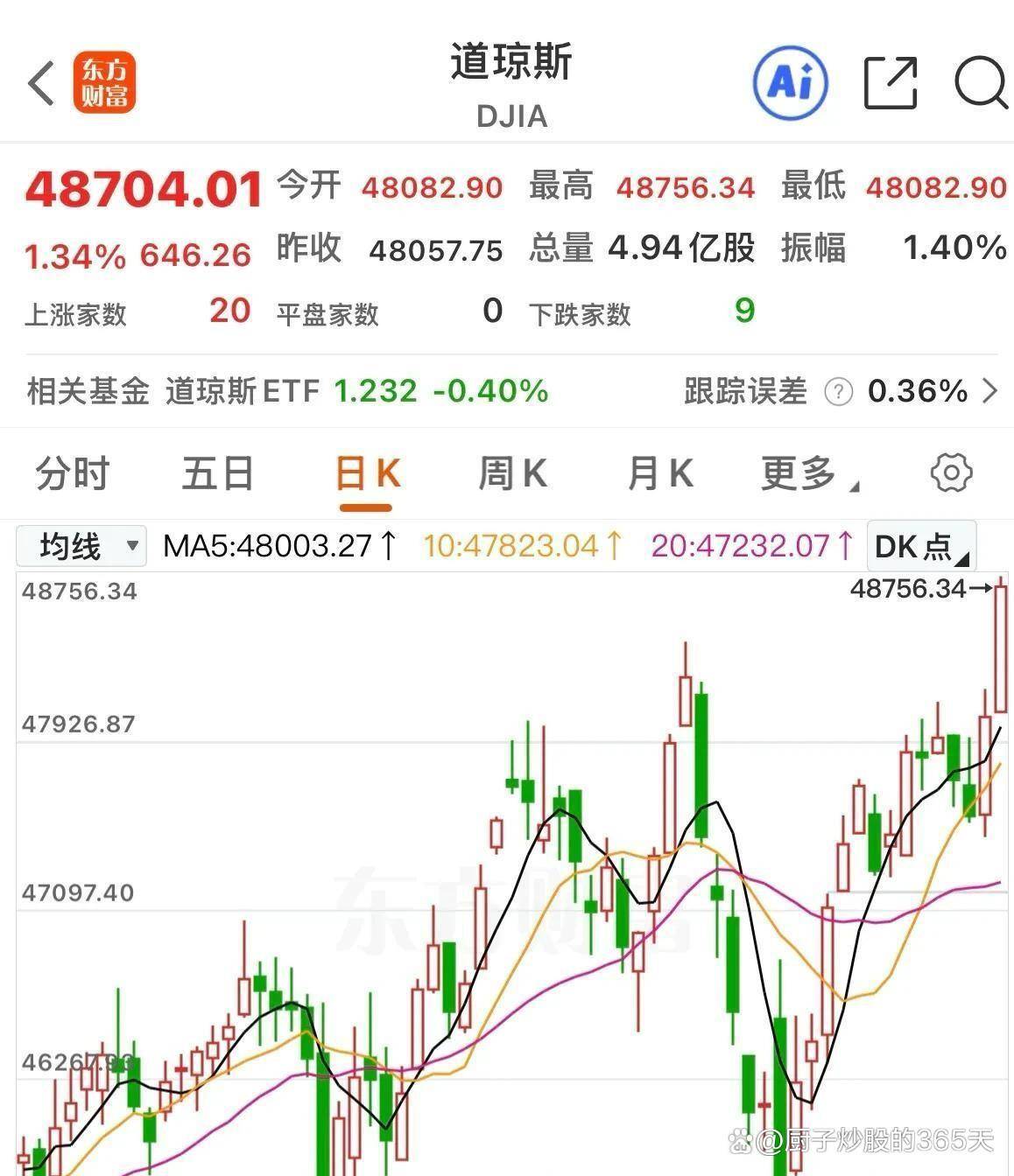 道指大涨1.34%创历史新高,全靠周期股撑场。