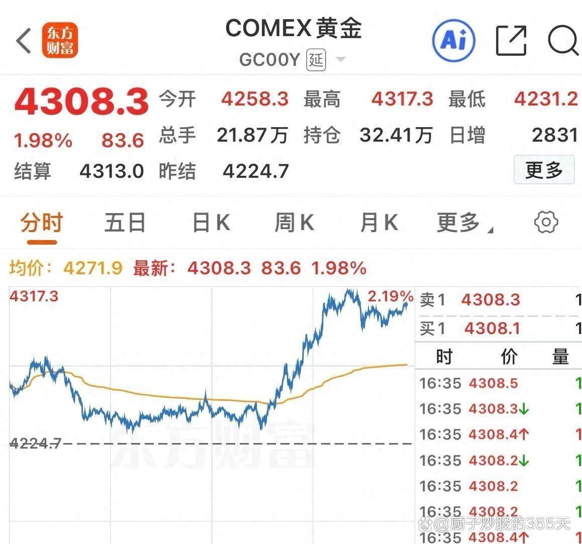昨晚,全球资本市场演了一出“冰火两重天”的大戏。 黄金价格飙到4308美元/盎司,单日暴涨近2%,而道琼斯指数疯狂大涨647点,创下历史新高。 但另一边,科技股集体崩了——AI巨头甲骨文一夜蒸发超4900亿市值,谷歌、特斯拉、英伟达纷纷跟跌。