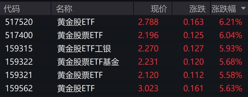 受盘面影响,黄金股相关ETF涨约6%。