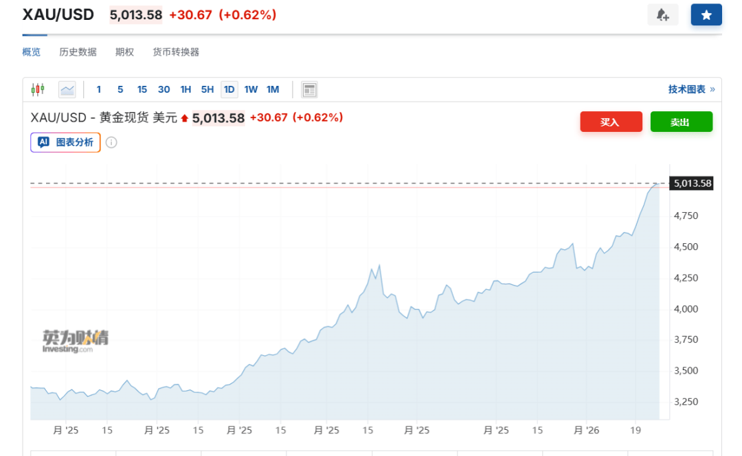 现货黄金首次突破5000美元/盎司。