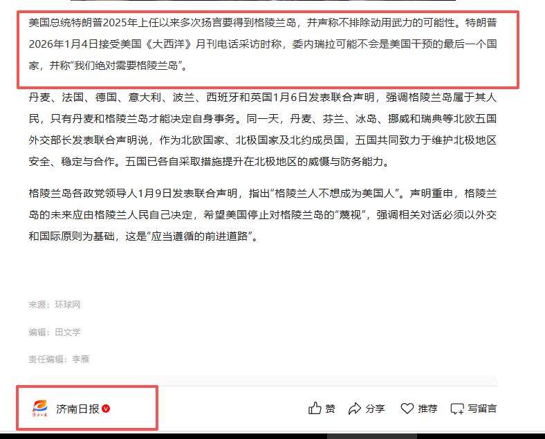 2026年1月4日,他在接受《大西洋》月刊电话采访时直言我们绝对需要格陵兰岛,并且表示这一举措是出于国防需求。此前,他还因对委内瑞拉局势发表强硬言论,暗示不会停止对外干预。这些强硬的对外扩张言论,显然是他在试图复制上一届大选中民粹牌的成功,借用民族主义情绪掩盖国内治理的争议。