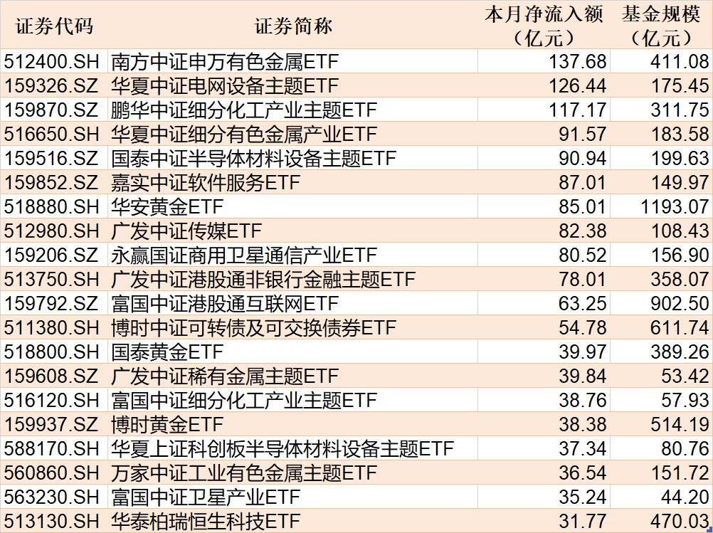 截至1月26日,本月资金净流入额居前20的ETF名单如下: