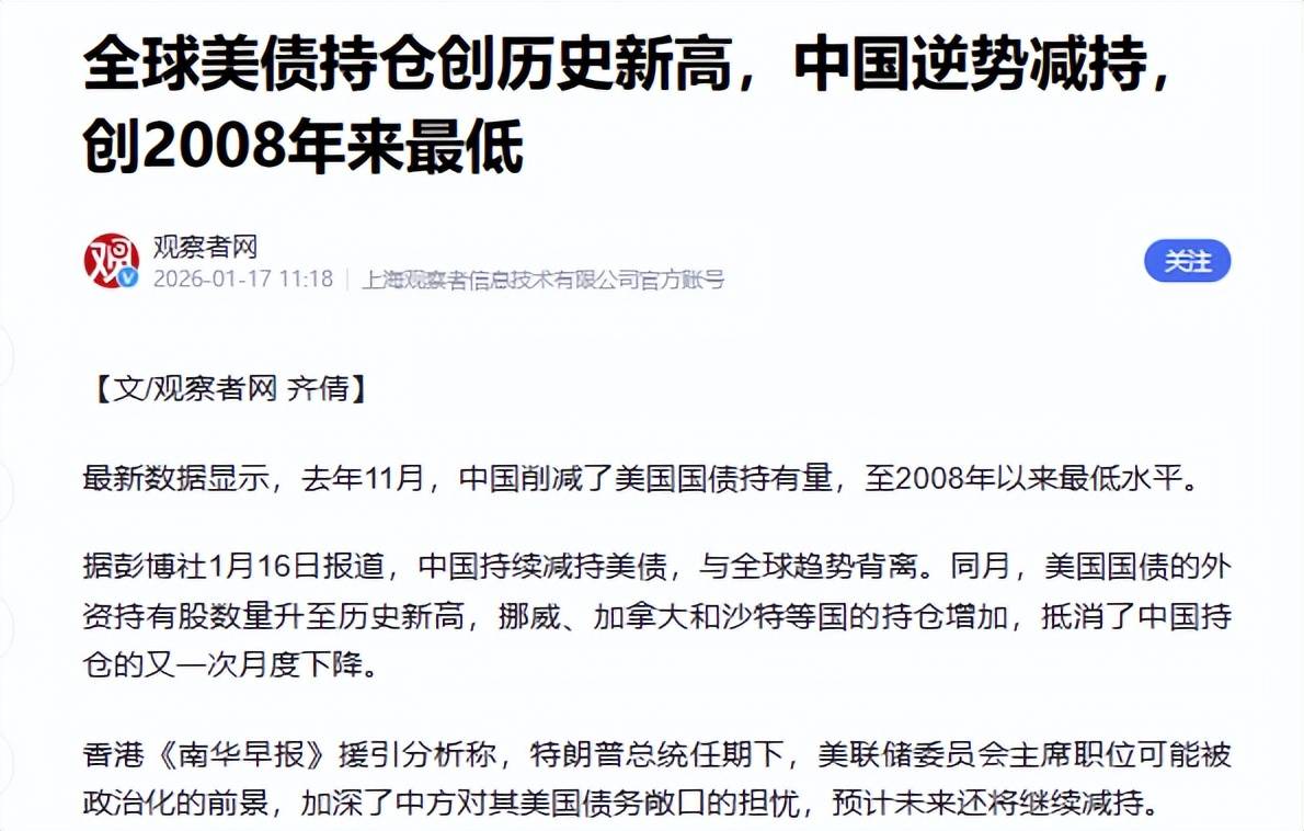 加拿大一边忙着与中国展开合作,一边却增持美债;英国也是如此,口头上宣称要务实,实际上仍在继续支持美元,而只有中国在逆流而行,坚定不移地减少美债持有量。有人认为中国此举是出于金融避险,也有人认为这是在进行战略对冲,但从更深层的角度看,实情其实相当简单。当美国的盟友们还在给美元霸权输血时,中国已通过实际行动,加速推动全球去美元化的进程。