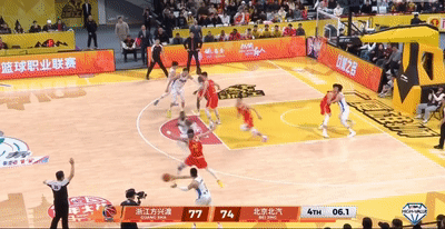 北京最后一攻,陈盈骏开球,杰曼第一个过来接球,在没怎么受到朱俊龙防守压迫的情况下突然将球交给雷蒙,雷蒙接球后第一时间想出手三分,但遭到胡金秋封堵,雷蒙左晃右晃始终没有找到出手机会,只能强行调高弧顶出手,最终也是偏的有点离谱。