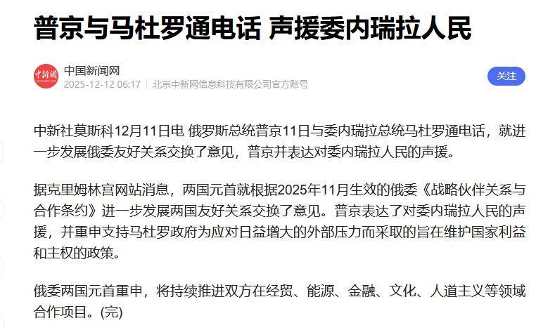 这就是12月23日联合国安理会激烈交锋的原因。表面上是讨论油轮事件,实际上是在美委长期对峙后发现既打不动也撤不走的情况下,中美俄三国坐下来商量解决方案。