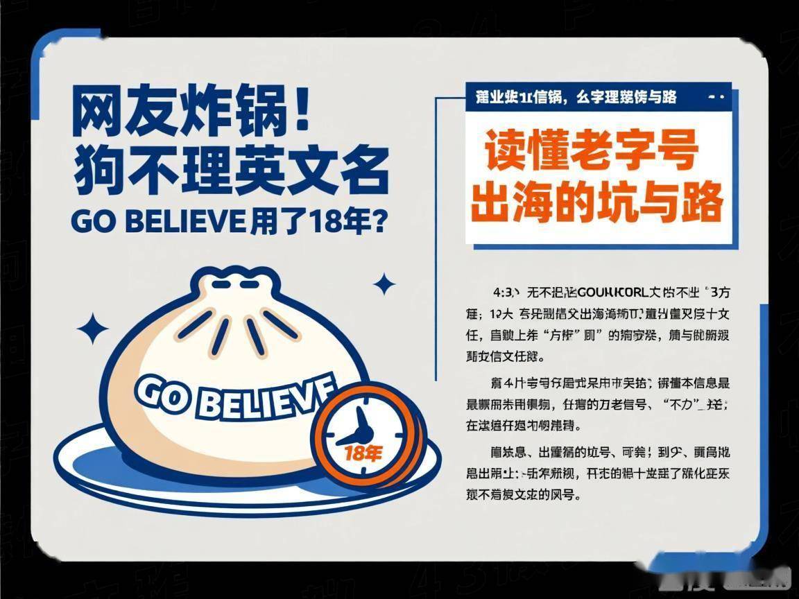 你要是最近刷社交平台,大概率会刷到这个热搜:有人在商场里看见狗不理的英文标牌,上面写着“GO BELIEVE”,当场懵了。