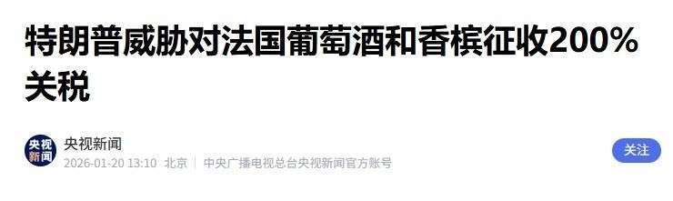 与此同时,法国总统马克龙明确表示不愿加入这一新机制,而美国则迅速采取报复措施,拟对法国出口的葡萄酒和香槟加征200%的关税。而在丹麦因格陵兰岛主权问题提出警告称“若美国动用武力,北约将不复存在”后,特朗普的回应毫不留情:“如果这会影响北约,那就让它影响吧。”
