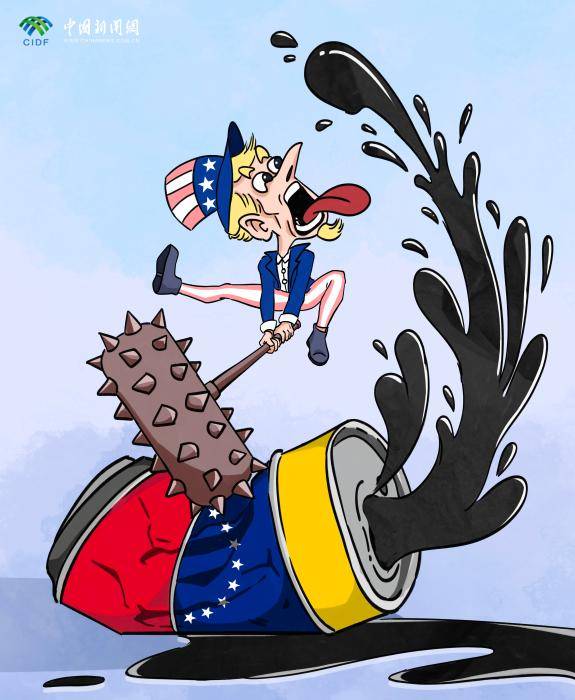举起能源霸权的“狼牙棒”,美国“爆锤”委内瑞拉石油资源。一同被“爆锤”的,还有战后国际规则和国际秩序。张开的大嘴,预示着美国不止企图鲸吞“黑色黄金”,更试图扼杀他国自主发展的根基。