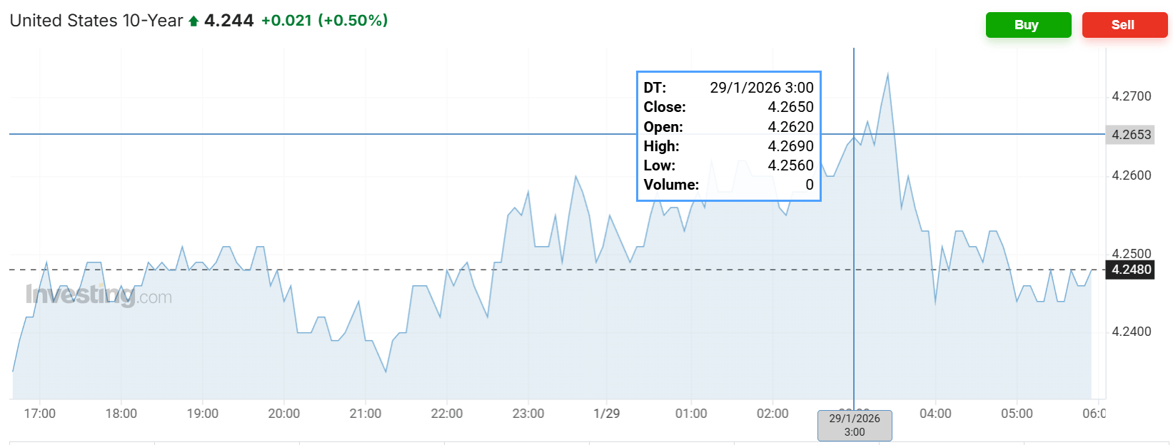 美联储发布1月决议声明前,美股较早盘高点有所回落,美债收益率日内上涨,美元涨,黄金涨: