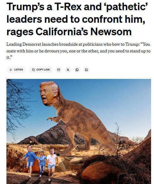 纽森的这番言论,随即受到美国政治新闻网(POLITICO)的关注,或许是受到“启发”,其在报道中“贴心”配上了一张漫画图。