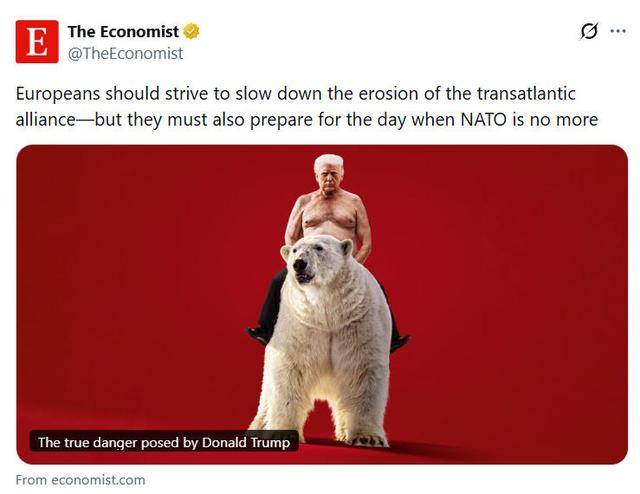 《经济学人》在社交媒体上配文称,“欧洲应当力争减缓跨大西洋联盟的衰退态势,但与此同时,他们也必须为北约不复存在的那一天做好准备。”