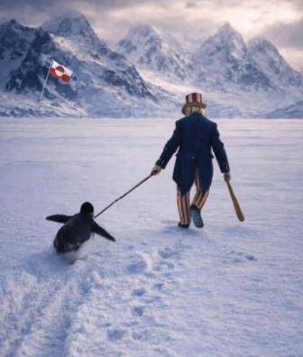 中国媒体也在其X账号上发布了一则“二次创作”的小动画,显示手持棒球棒的山姆大叔用绳索拖拽不愿前行的企鹅,并配文“即使格陵兰岛上有企鹅,情况也会是这样。”