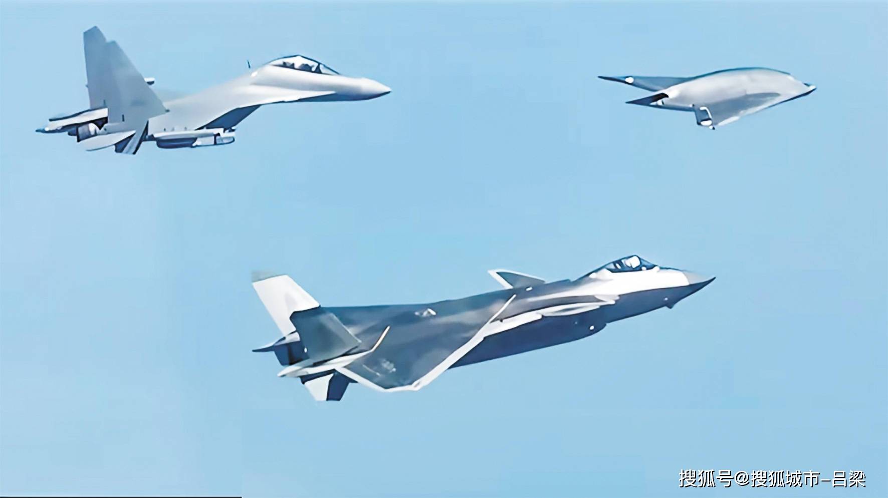 影片中也首次公开了歼-20、歼-16D和攻击-11编队飞行的画面,这表明中国空军已实现“有人机+无人机”协同作战。“歼-16D可以对敌方进行电子干扰,压制对方雷达;歼-20为攻击-11扫清空中障碍,打击空中目标;攻击-11则可深入对方严密设防的目标区域进行对地打击,消灭对方的防空系统、重要指挥设施和其他重要地面目标。”