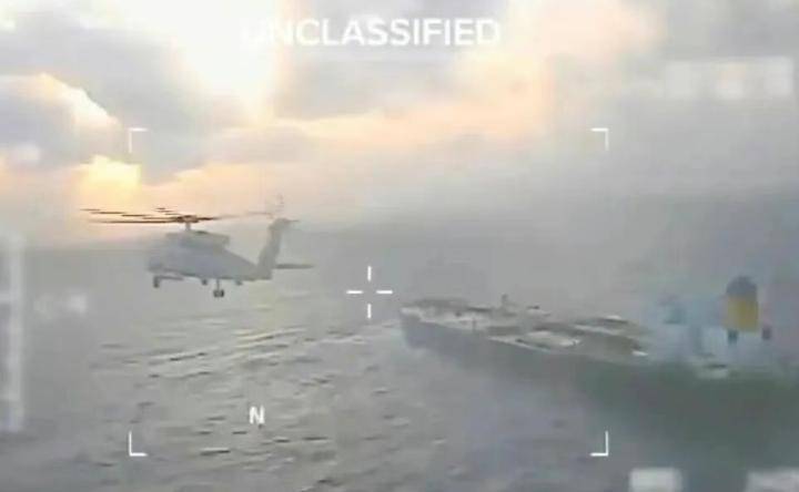 美军早已为此次扣押行动做好了周密部署。从1月3日至5日,至少12架C17运输机将特种部队和相关装备运送至英国的费尔福德和莱肯希思空军基地,英军的V22倾转旋翼机也多次进行演练,所有迹象表明,美英联军正在为扣押行动做准备。行动当天,美军出动了海警755号舰、P8反潜机、AC130J空中炮艇以及多架直升机,英国皇家空军也派出RC135侦察机监控周围的通信,显然,这是一场美英主导的军事行动。
