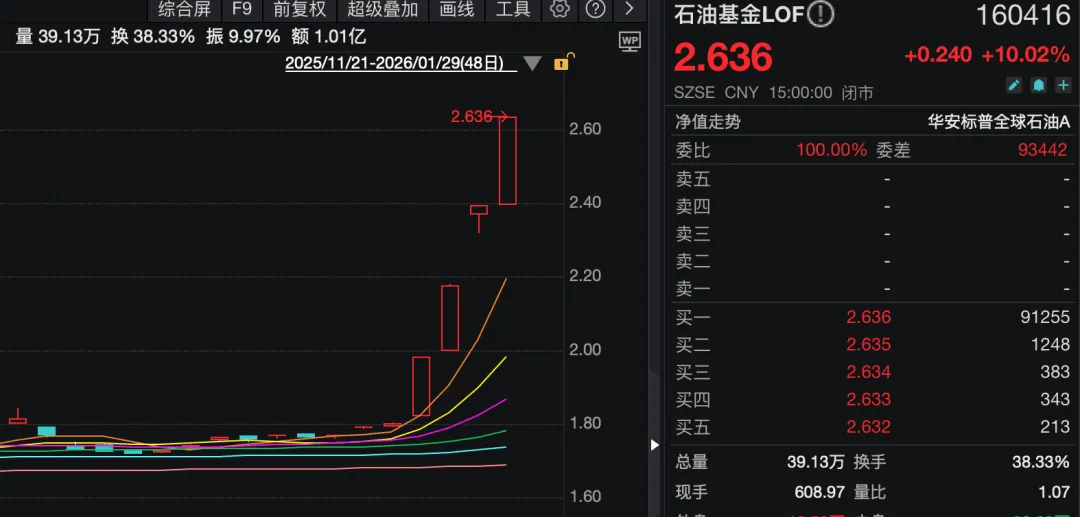 华安基金公告显示,旗下石油基金 LOF在二级市场的交易价格出现较大幅度溢价,交易价格偏离前一估值日的基金份额净值。特此提示投资者关注二级市场交易价格溢价风险,投资者如果盲目投资,可能遭受重大损失。为维护投资者利益,本基金将于2026年1月30日开市起至当日10:30停牌,自2026年1月30日10:30复牌。