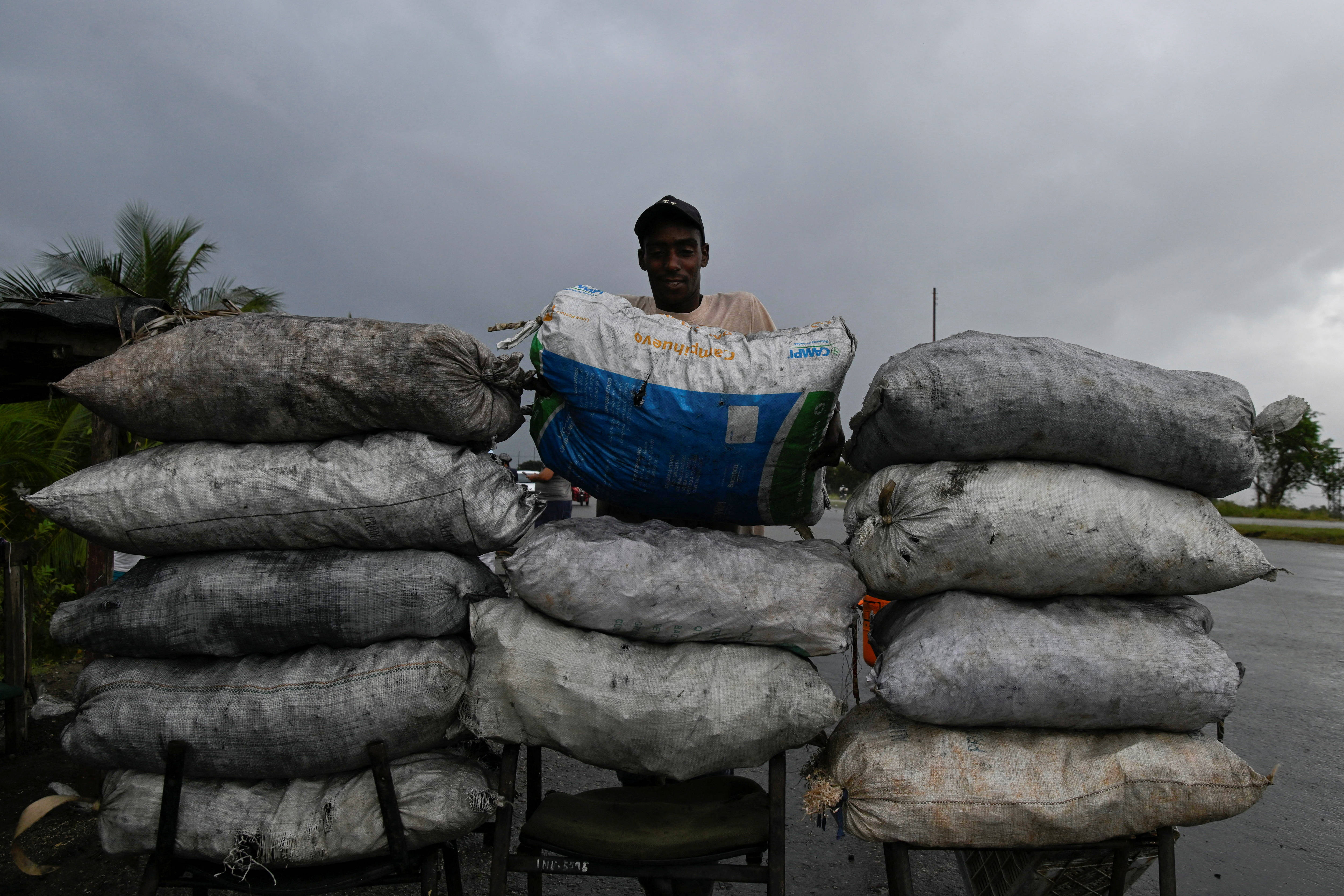 1月12日,在古巴首都哈瓦那,一名男子贩卖木炭。 新华社/路透