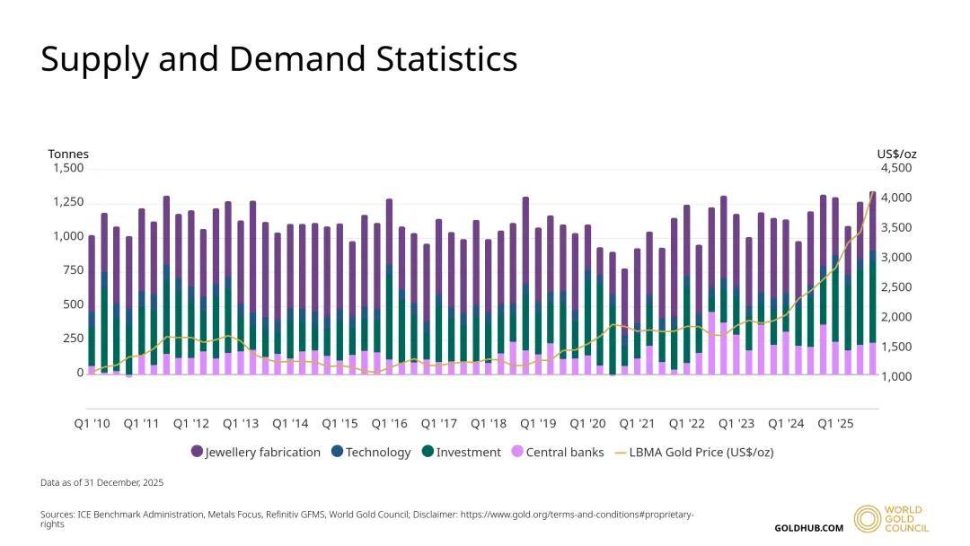 抵御风险层面,在国际政经格局长期重塑的大背景下,各国央行对已发生及潜在风险事件反应相对钝化,同时,金价持续创新高导致增持成本与交易风险同时显著上升,金价波动加剧,导致各国央行更加注重购买黄金的交易时机。在上述多重因素的共同作用下,致使央行对黄金的需求在2025年出现边际放缓。