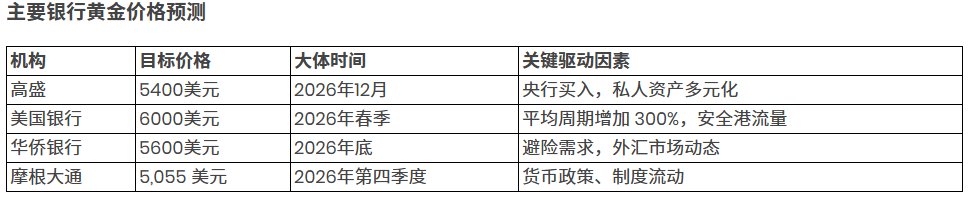 华侨银行指出,2026年底目标价是5600美元,核心驱动力为避险需求与汇市动态。