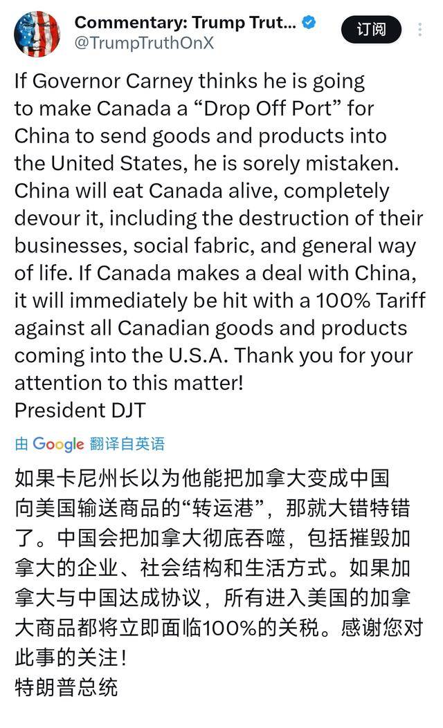 几天前他还夸卡尼“谈得好”,转眼就骂对方“让加拿大自我毁灭”,甚至放话“中国会生吞活剥加拿大”。