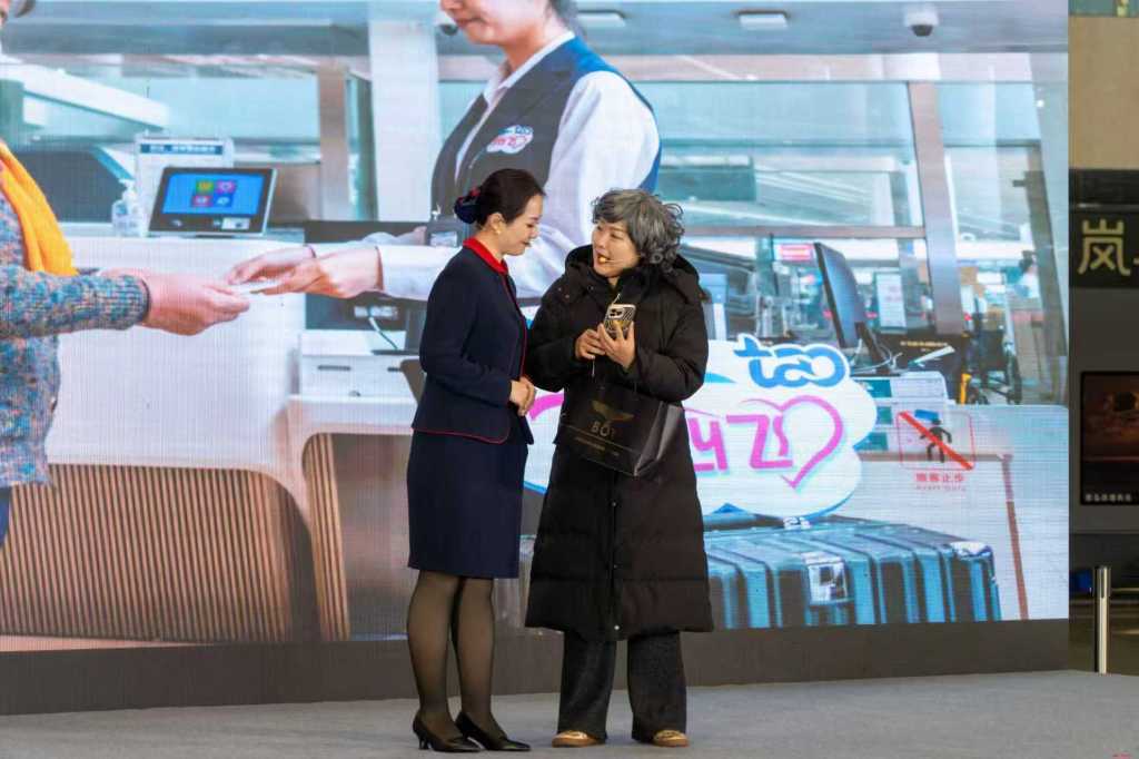 “我们全家计划今年去南方过年,青岛直飞三亚的航线太及时了,大大节省了路途时间。”在活动现场观看航线推介的李先生高兴地表示。活动现场划分舞台观演、航旅集市、春运体验三大区域,融入文艺表演、航线推介、非遗手工制作、互动打卡等丰富环节。“孩子对着非遗手作展品挪不开脚,跟着传承人学做手工让候机时间变得充实又有意义。”带着孩子参与体验的刘女士笑着说道。多样化的互动场景,让旅客在候机间隙便能沉浸式感受青岛的文化魅力与浓厚节日氛围。