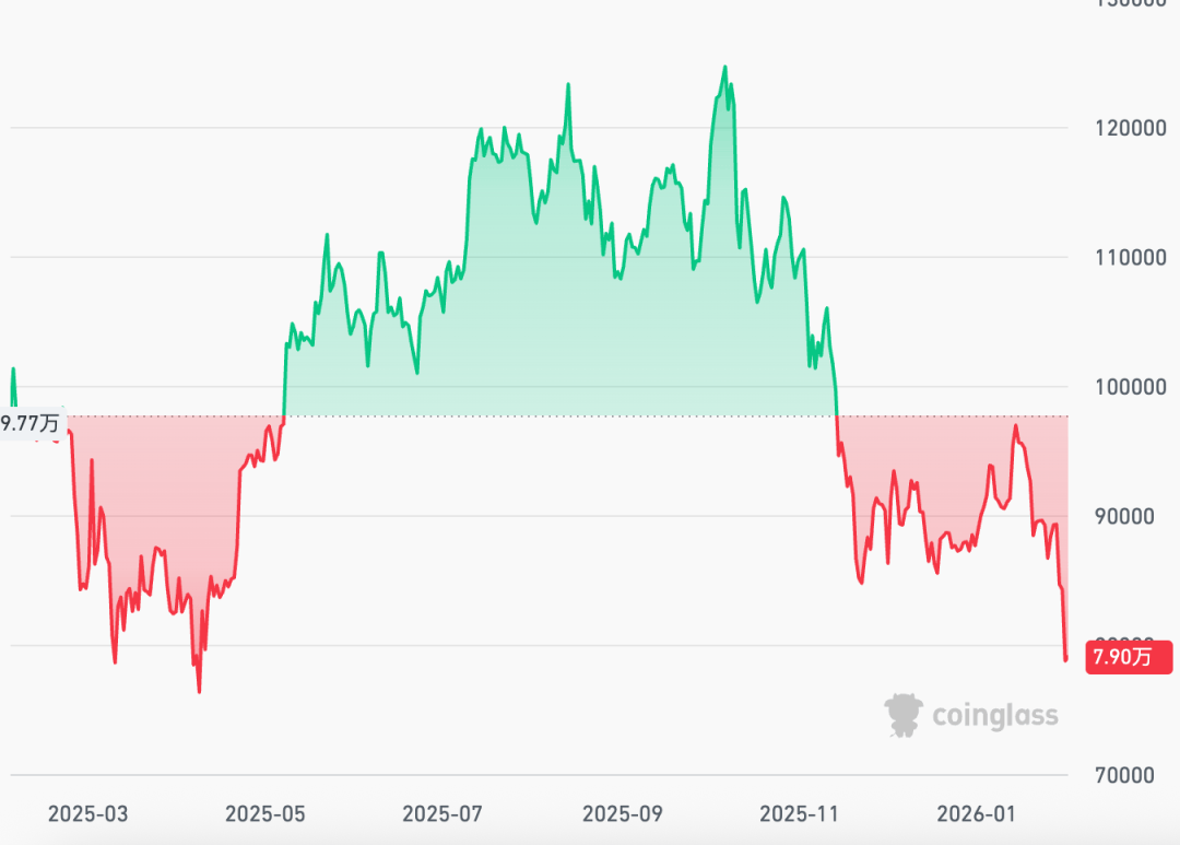 2月1日凌晨,比特币一度跌至75719美元/枚,跌至2025年4月以来的最低水平,截至发稿,比特币回升至79000美元,日内跌2.58%。