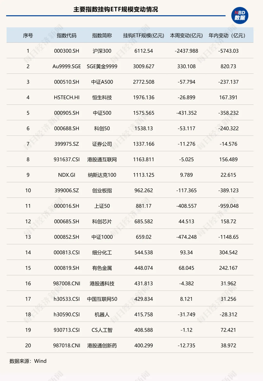 5只头部产品失血超400亿元,“千亿ETF”仅剩5席