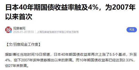 这篇文章分析黄金破5000美元、房地产出现微妙变化,2026年的财富逻辑正在重写,金银价格持续攀升,背后是全球货币信用体系正在经历深刻变革,我们每个人的财富观念都需要一次全面升级,与此同时,日本40年期国债收益率时隔三十年再次突破4%,美国债务规模像滚雪球般扩大,全球货币体系正在经历一场静悄悄的革命。