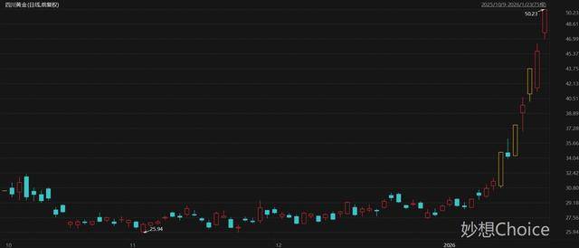 四川地质局旗下的金精矿企业四川黄金周五盘中一度涨停,最高触及50.23元/股。四川黄金12月20日公告,公司9月30日,以5.1亿元竞得新疆高昌区库格孜-觉北金矿普查探矿权,并于近日取得矿产资源勘查许可证。
