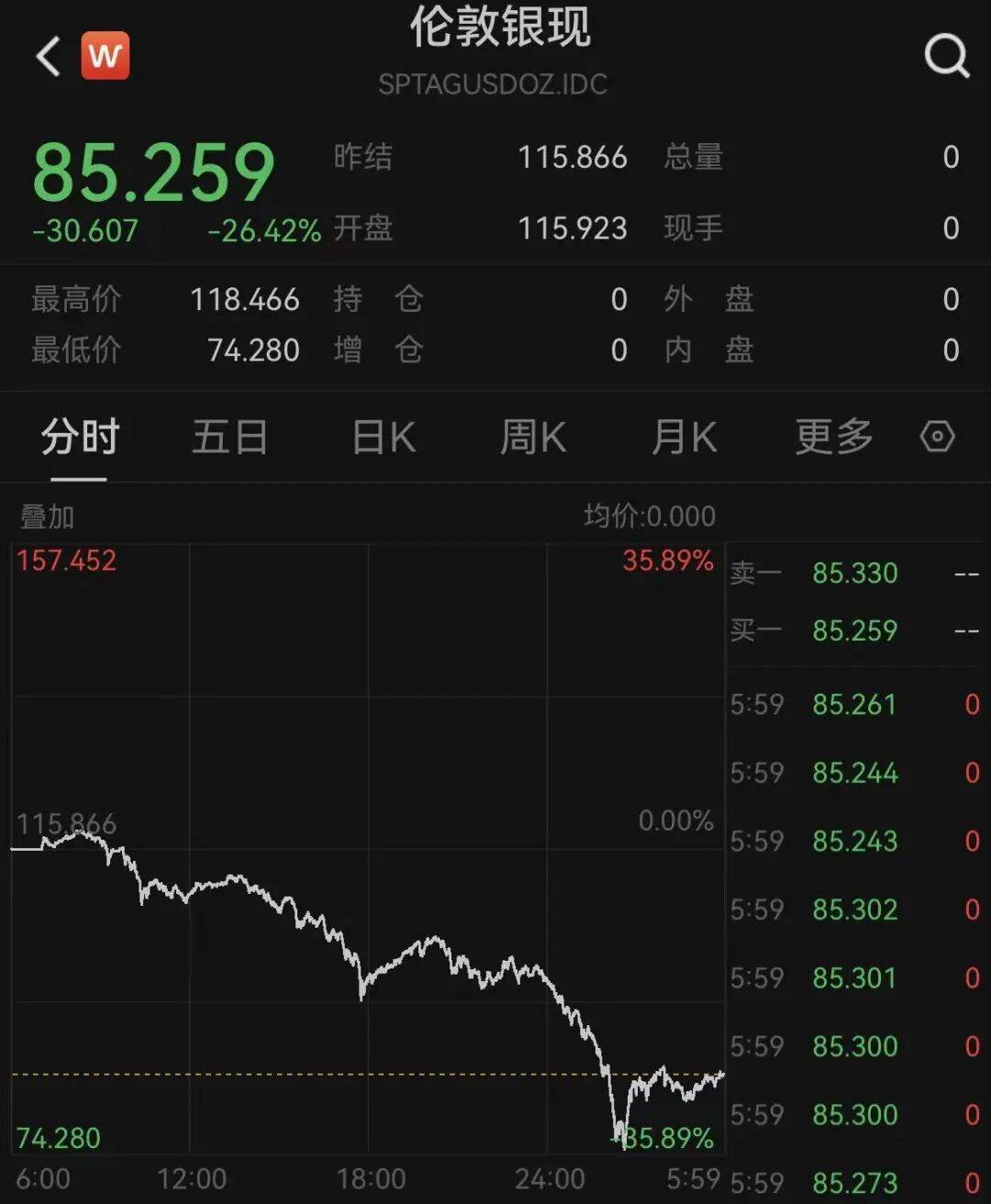 现货白银价格遭遇“史诗级”暴跌,日内最高跌幅达36%,最低下探至74.28美元/盎司。这一传统贵金属市场的极端寒流,竟意外击穿了加密货币市场的防线,引发了一场罕见的“跨界”连锁崩盘。