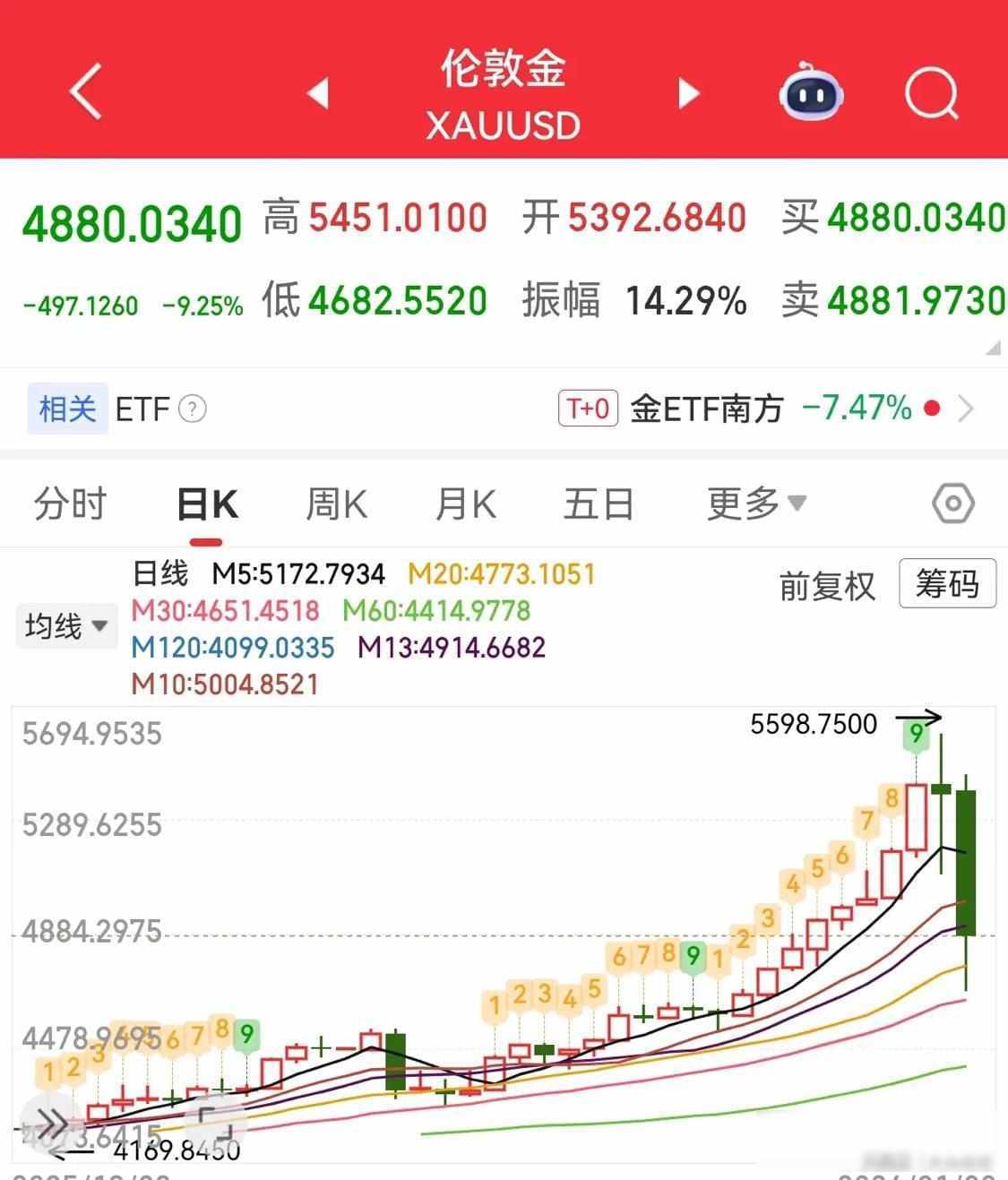 一月二十九号那天,黄金现货价格升到五千五百九十八点七五美元一盎司,白银也涨到一百二十一点六五四美元,都创下历史新高,很多人认为还能继续上涨,于是增加持仓、放大杠杆,信心十足,结果第二天下午开始,价格突然掉头向下,像断了线的风筝那样越跌越快,到了三十一号凌晨,大量卖单集中涌出,市场根本接不住。