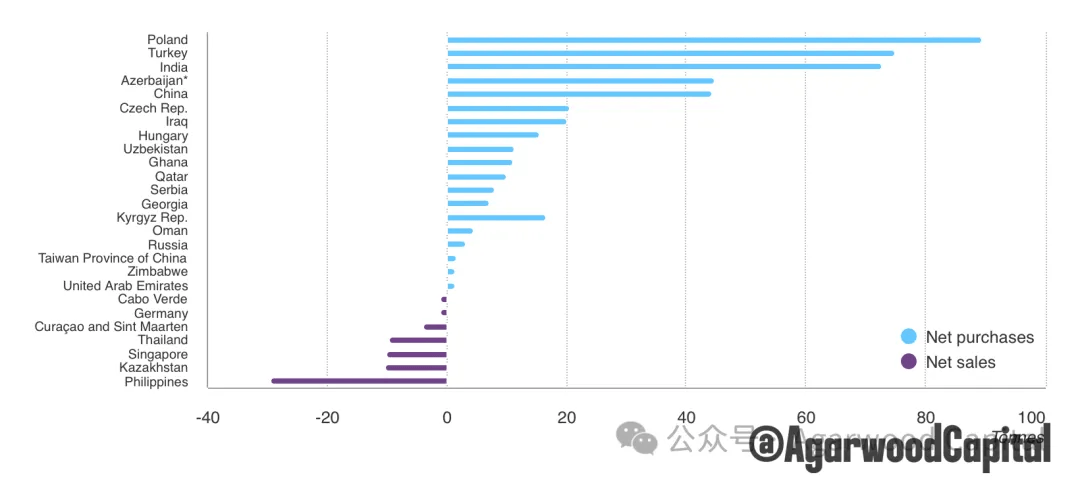 图 2:2024年按国别央行净购(售)金对比图