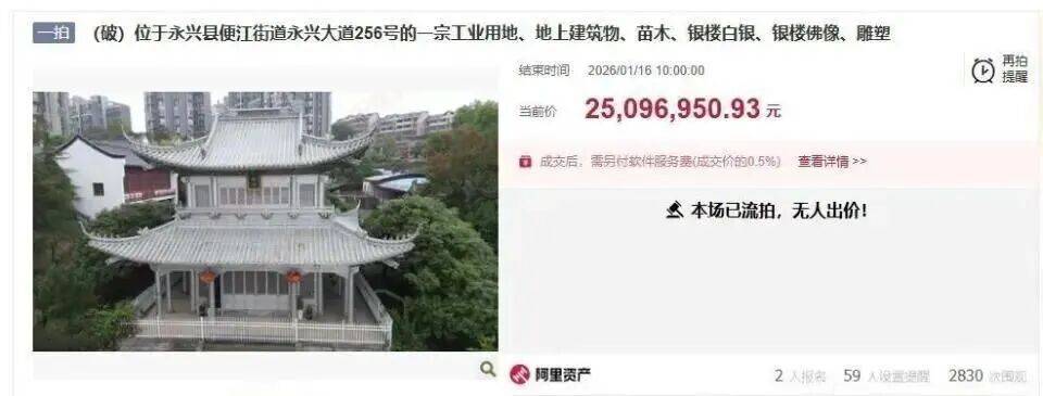 记者看到,本次拍卖于1月16日进行,有两人报名,但因无人出价最后流拍。