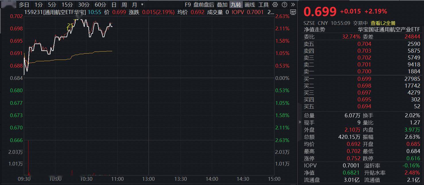 1月23日早盘,商业航天+卫星导航强势反弹,航发控制涨停,航发动力涨超7%,广联航空、睿纳雷达双双涨逾6%。一键布局商业航天+卫星导航+低空经济+大飞机的通用航空ETF华宝(159231)场内价格开盘后震荡走高,现涨2.19%,有望止步4连阴。
