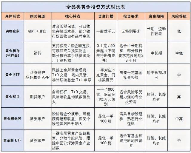 下面为市场主流黄金投资方式对比