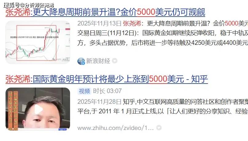 张尧浠:金价如期突破5000美元、年内目标进一步上移